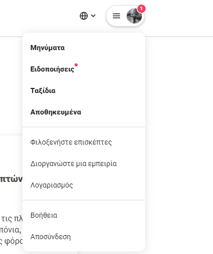1. Επισκέπτεστε την ιστοσελίδα airbnb.gr και πατάτε στο εικονίδιο πάνω δεξιά και κατόπιν το λινκ "εγγραφή".
