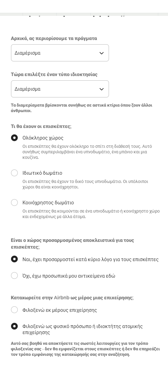Δημιουργία airbnb λογαριασμού και παραμετροποίηση του