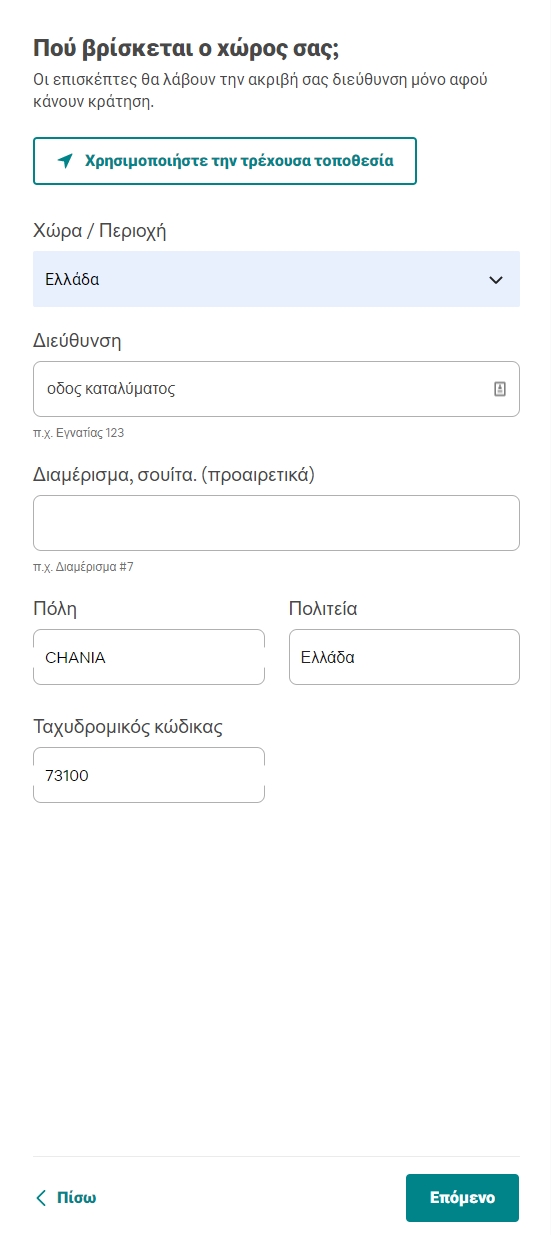 2. Συμπληρώνετε τον τύπο καταλύματος, χωρητικότητα και αριθμό μπάνιων